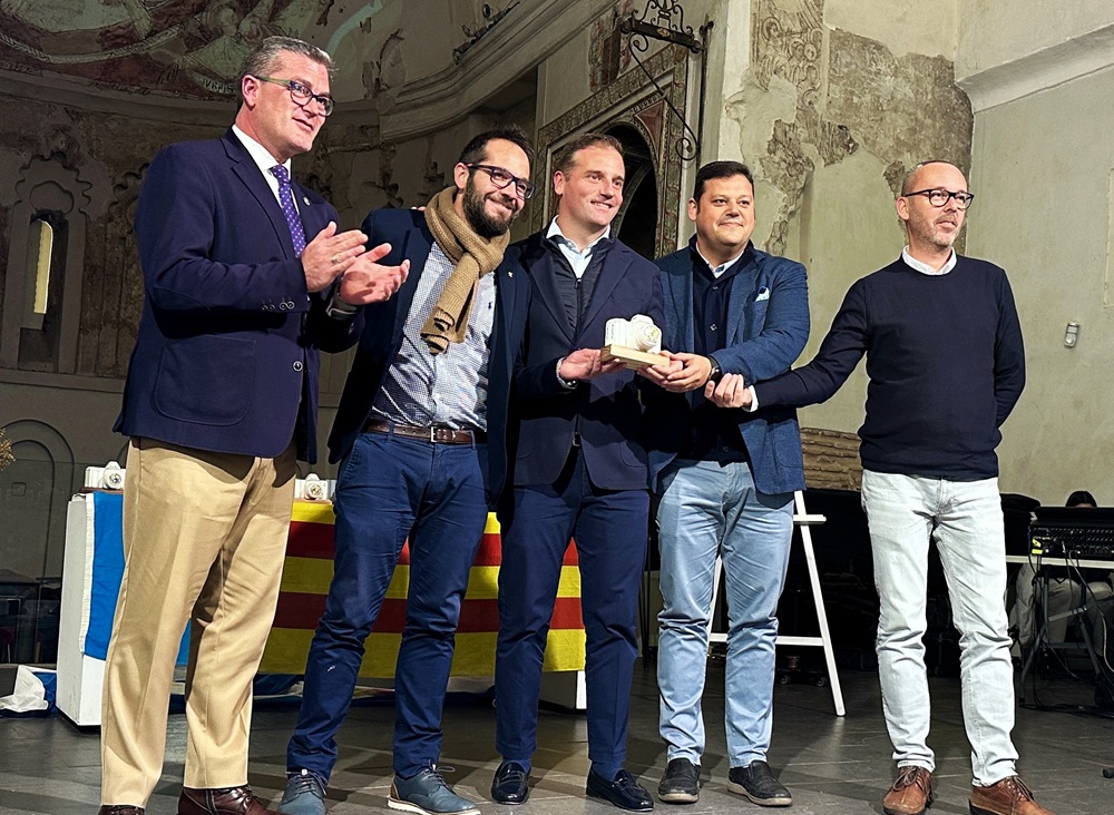 Presidente de la asociación de Informadores Graficos, Pau Barroso entrega a César Lucas Escribano, por (Trayectoria).