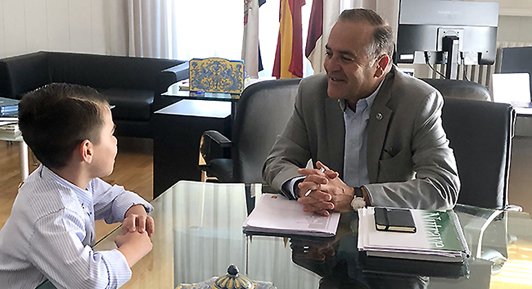 Durante esta semana Gregorio también recibía la visita de Gonzalo García, un joven talaverano de 10 años, cuya ilusión era conocer el ayuntamiento. Gonzalo y Gregorio mantuvieron una conversación en Mondas, y el actual alcalde le prometió que si llegaba a gobernar Talavera, Gonzalo sería una de las primeras visitas que recibiría en el Consistorio. El primer edil, además de mostrarle su despacho, le ha enseñado el Salón de Gestores, los dos salones de Plenos o la escalera noble, entre otras dependencias municipales y le ha dejado claro que tanto Gonzalo, "como cualquier talaverano tiene las puertas abiertas de este Ayuntamiento".