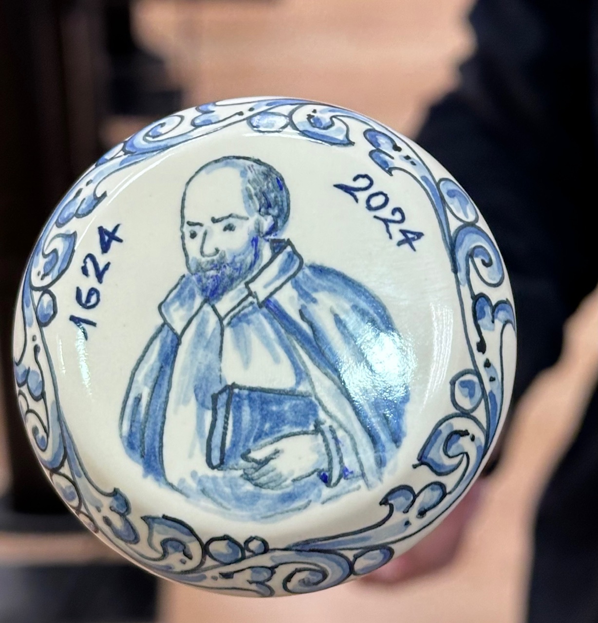 Por su parte, Alberto Acosta ha explicado que la pieza “es puramente artesanal, torneada a mano” e incluye el retrato del Padre Juan de Mariana a medio cuerpo con el libro “que es muy simbólico”. El retrato está enmarcado con una greca de renacimiento muy clásica talaverana y en el cuello del bastón incluye una bola torneada en la que se puede leer Mondas 2024, y para cerrar el bastón en el mismo cuello se ha insertado una greca de renacimiento también en color azul, a juego con la de arriba.