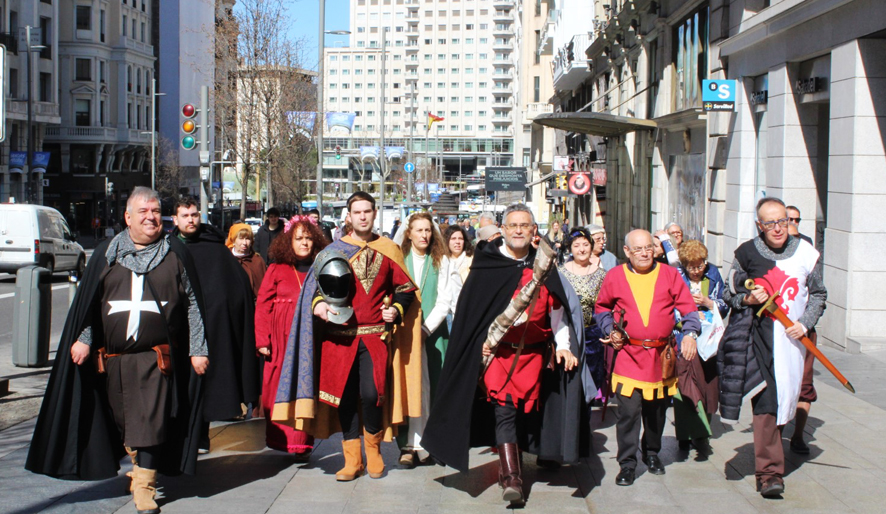 Unas 30 personas se han trasladado desde Torrijos hasta la Gran Vía de Madrid para participar en la presentación de las XVI Crónicas del Rey Don Pedro.