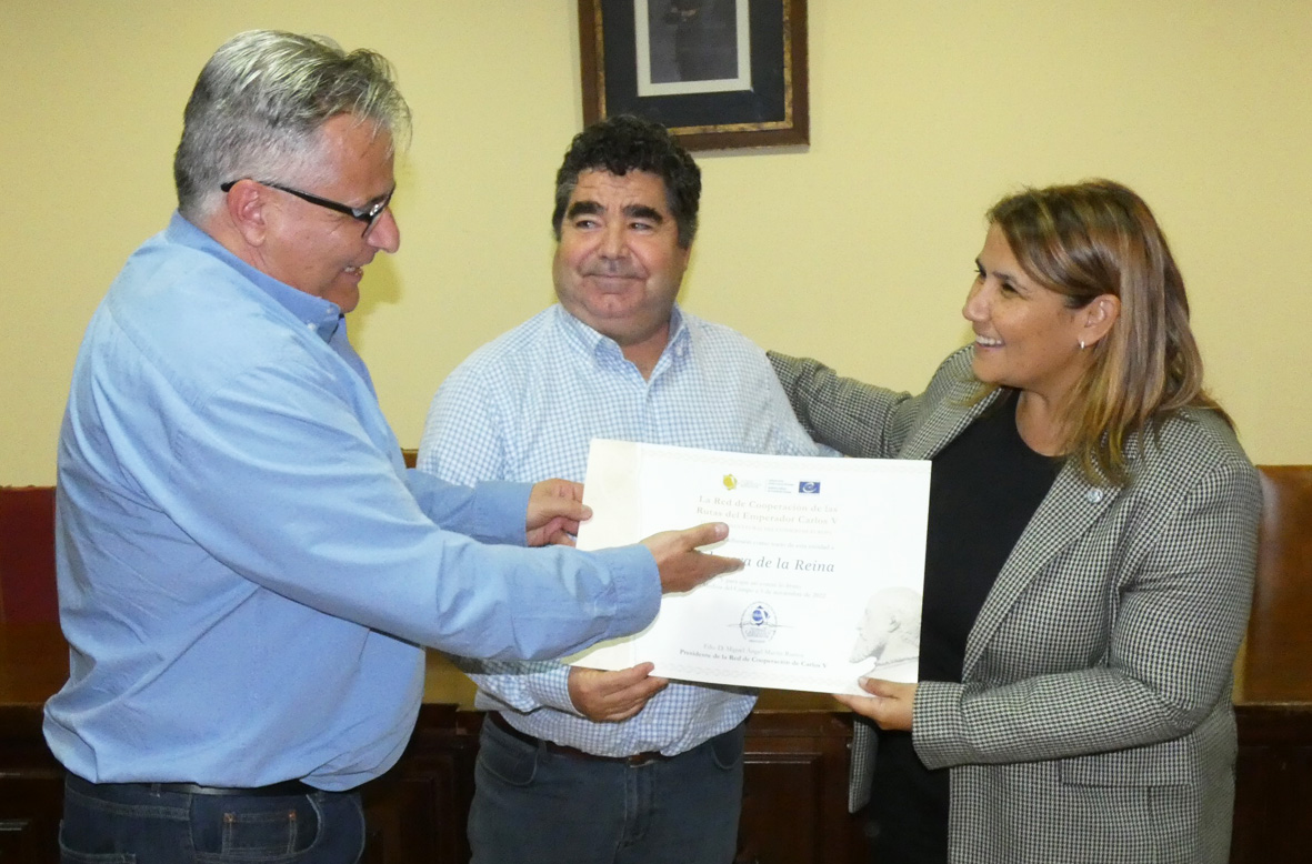 La primera edil de Talavera, Agustina García Élez, ha recibido esta distinción de manos del alcalde de Jarandilla, Fermín Encabo, con la presencia también del gerente de la Red de Cooperación, Quitín Correas. Aquí, la regidora talaverana ha agradecido la invitación para que Talavera de la Reina pase a formar parte del Itinerario Cultural Europeo de Carlos V, un “selecto club de ciudades y sitios históricos, cuyo nexo de unión, es conformar la red de itinerarios recorridos por Carlos V durante su reinado”. A partir de ahora, ha continuado, “compartimos un objetivo común en la defensa y promoción de los recursos turísticos, histórico-culturales y económicos” de las rutas, ensalzado la importancia de la “unión de esfuerzos para lograr, entre todos, mucho más de lo que cada una de nuestras ciudades, por sí solas, llegarían a conseguir”.
