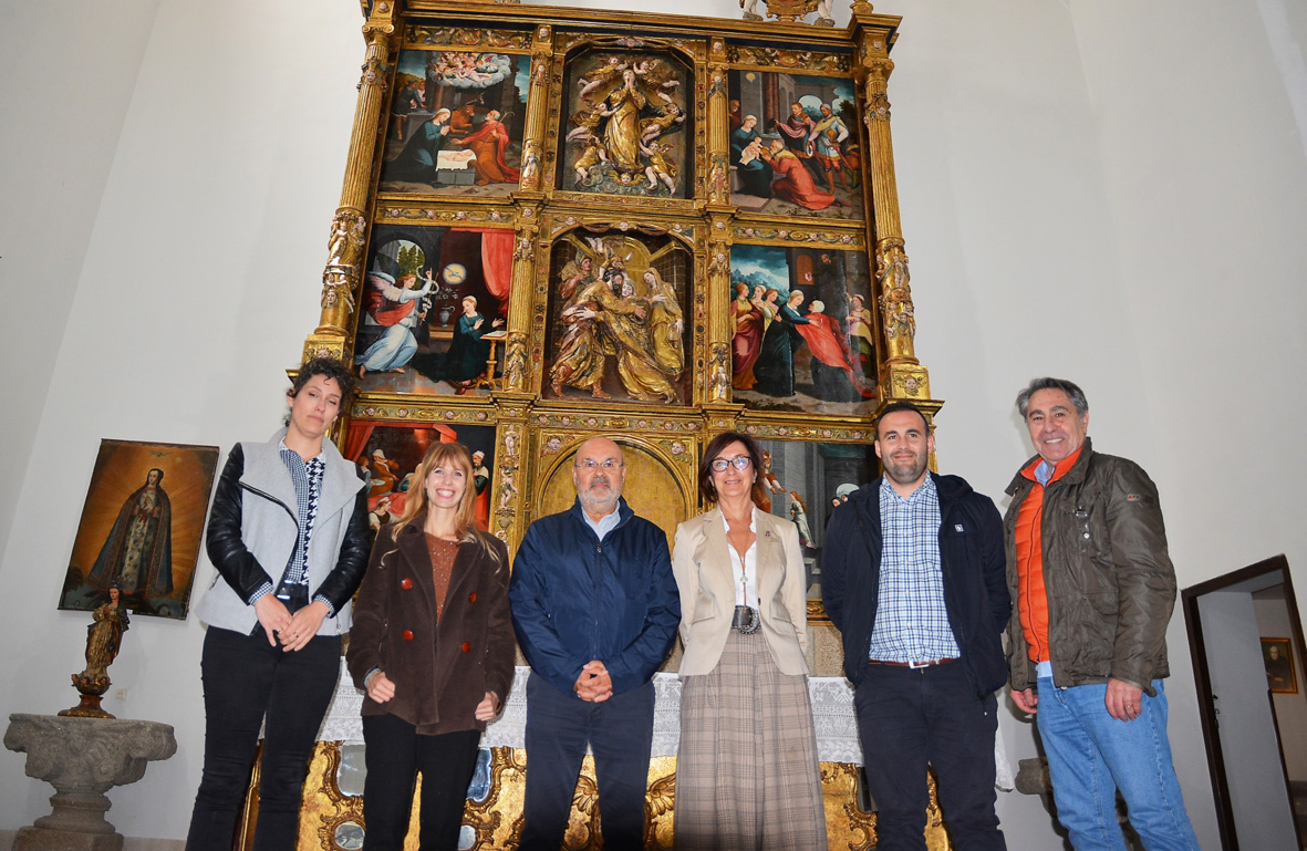 Oropesa ha recuperado el esplendor de una de las joyas patrimoniales que atesora la localidad toledana como es el retablo de la vida de la Virgen María que se conserva en el Convento de las Oblatas. Esta delicada tarea ha sido realizada por las restauradoras Rosalina Arenas Aguado, (Rosa Aguado) y Ana Duque, quienes contaron con la colaboración del restaurador de la Diputación, Enrique Toledo. La actuación ha sido presentada hoy en Oropesa por la vicepresidenta de Educación, Cultura, Igualdad y Bienestar Social, Ana Gómez, y el alcalde de la localidad, Juan Morcillo, en la capilla del Convento de las Oblatas junto al restaurador de la Diputación, Enrique Toledo, y las dos restauradoras que han llevado cabo los trabajos de recuperación de esta joya patrimonial del siglo XVI con pinturas del pintor toledano Juan Correa de Vivar y tablas del escultor Juan Bautista Vázquez el Viejo.