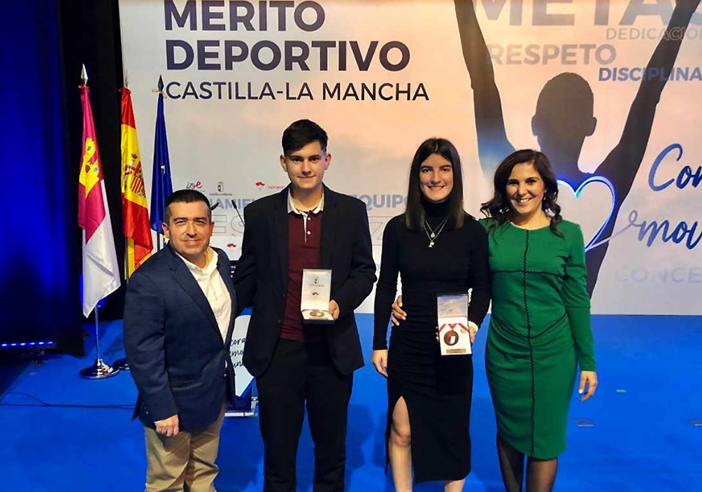 Noemí Aguilar, campeona de Pádel y Mario Sánchez, campeón de Tiro con Arco, reconocidos en la gala de los Premios y Distinciones al Mérito Deportivo de Castilla-La Mancha.
